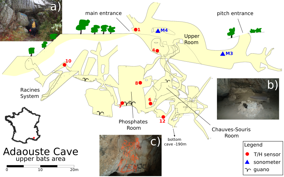 La grotte de l’Adaouste située dans la vallée de la Durance sur la commune de Jouques est connue depuis les années 50 comme un important gîte régional. C’est en même temps un lieu de pratique fréquent pour les spéléologues locaux et une cavité avec un très fort enjeu patrimonial d’un point de vue géologique.